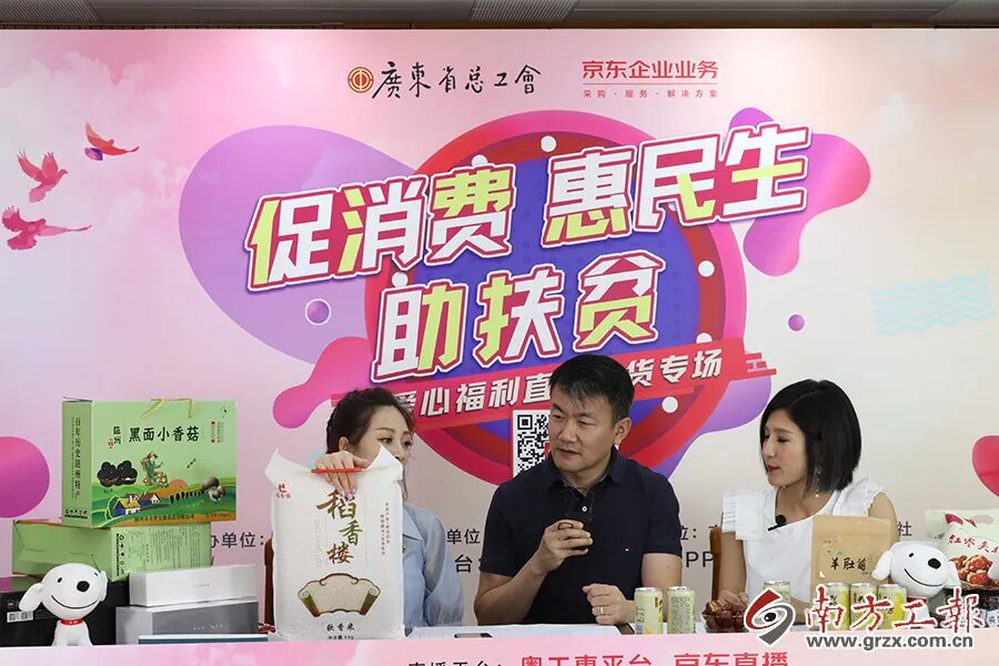 本次直播带货活动由广东省总工会主办,京东企业业务协办,结合“广东扶贫济困日”主题,鼓励基层工会购买扶贫产品作为职工福利,广泛发动爱心企业、职工参与消费扶贫,进一步助力贫困地区决战决胜脱贫攻坚。