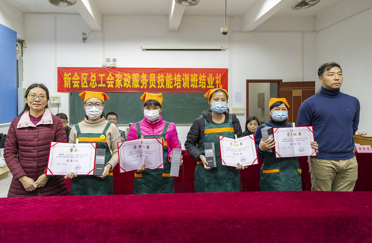 汤买波强调,会员需求、社会需要就是工会举办技能培训的目标。省委、省政府将实施“粤菜师傅”“广东技工”“南粤家政”三大工程列入省政府十件民生实事,纳入乡村振兴实绩考核指标,高标准谋划、高质量实施。区委区政府高度重视,印发了《新会区落实〈新时期产业工人队伍建设改革实施方案〉责任分工方案》,其中南粤家政队伍建设也是重要的组成部分。 加强工校合作、工企合作,是为新会区家政行业制度化、规范化、标准化、职业化,为家政行业高质量发展,为做好“六保”“六稳”工作发挥职工“娘家人”应有的作用。