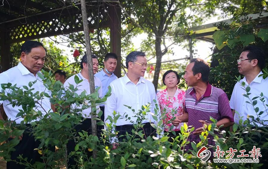▲吕业升(中)考察头堡稔垌自然村新农村建设 陈硕/摄