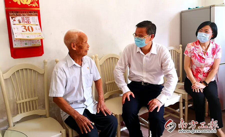 ▲吕业升看望慰问老党员吴昭润(左一) 陈硕/摄