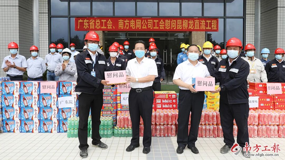 当天,广东省总工会调研了惠州龙门换流站的建设情况,观看了昆柳龙直流工程劳动竞赛成果展,并为一线建设者送去清凉饮品。