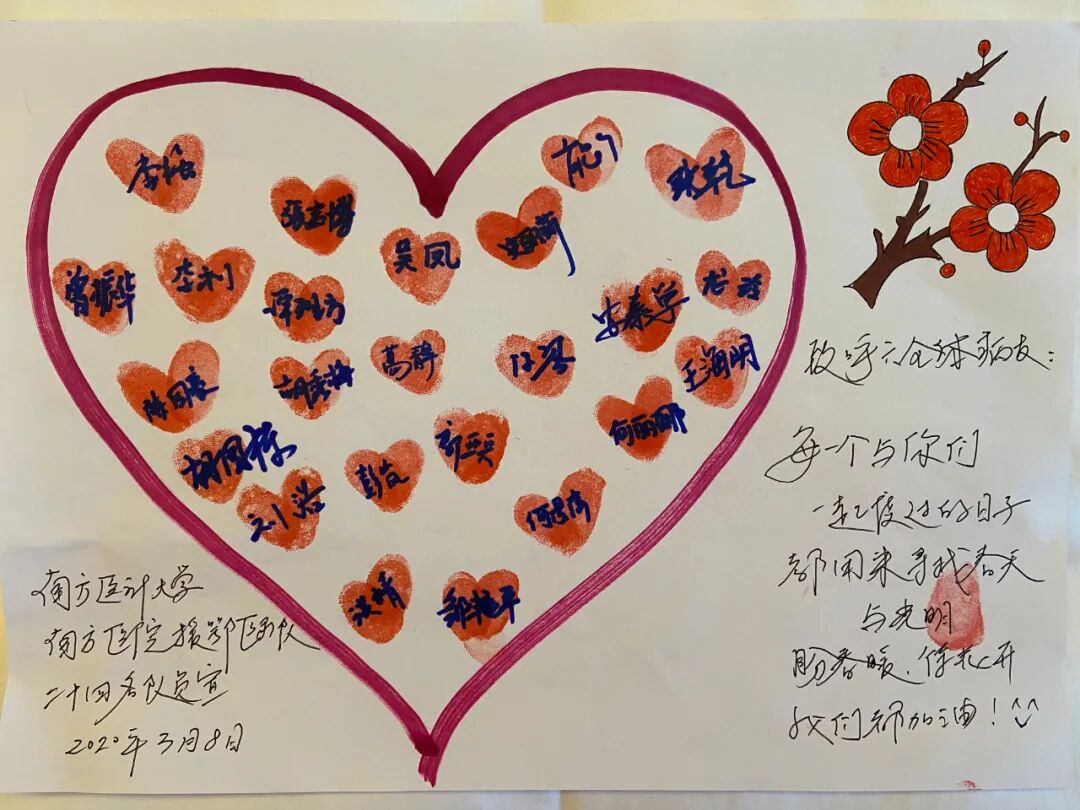 离开武汉时,李利组织队友一起制作了心形卡以作纪念。她在卡片中写道:“每一个与你们一起度过的日子,都用来寻找春天与光明。”(李利供图)